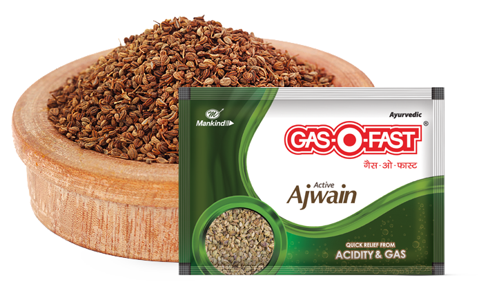 Ajwain is full of thymol and is a natural remedy for gas, flatulence and indigestion. A teaspoon of ajwain with hot water helps cure acidity. It acts as a natural remedy in curing gas, flatulence and indigestion. Gas-O-Fast knows, nothing is better than home remedies hence we’ve brought to you an ayurvedic replacement for powdered antacids, Gas-O-Fast Asli Ajwain! It starts working in seconds to relieve you from the burning sensation of Acidity.